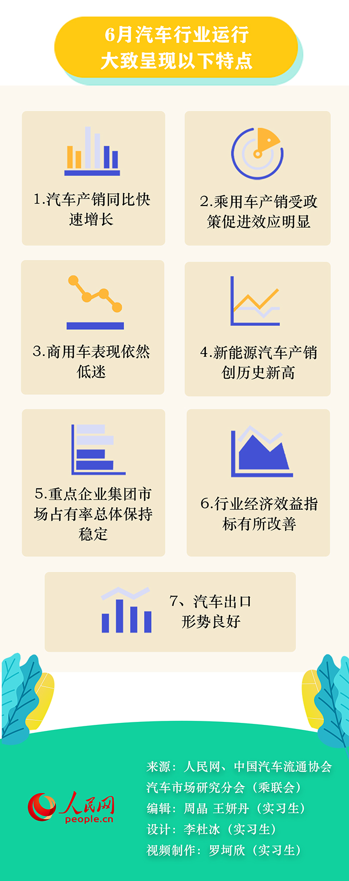 新聞數理化|穩產保供措施持續顯效 6月汽車產銷同比增幅均超20%