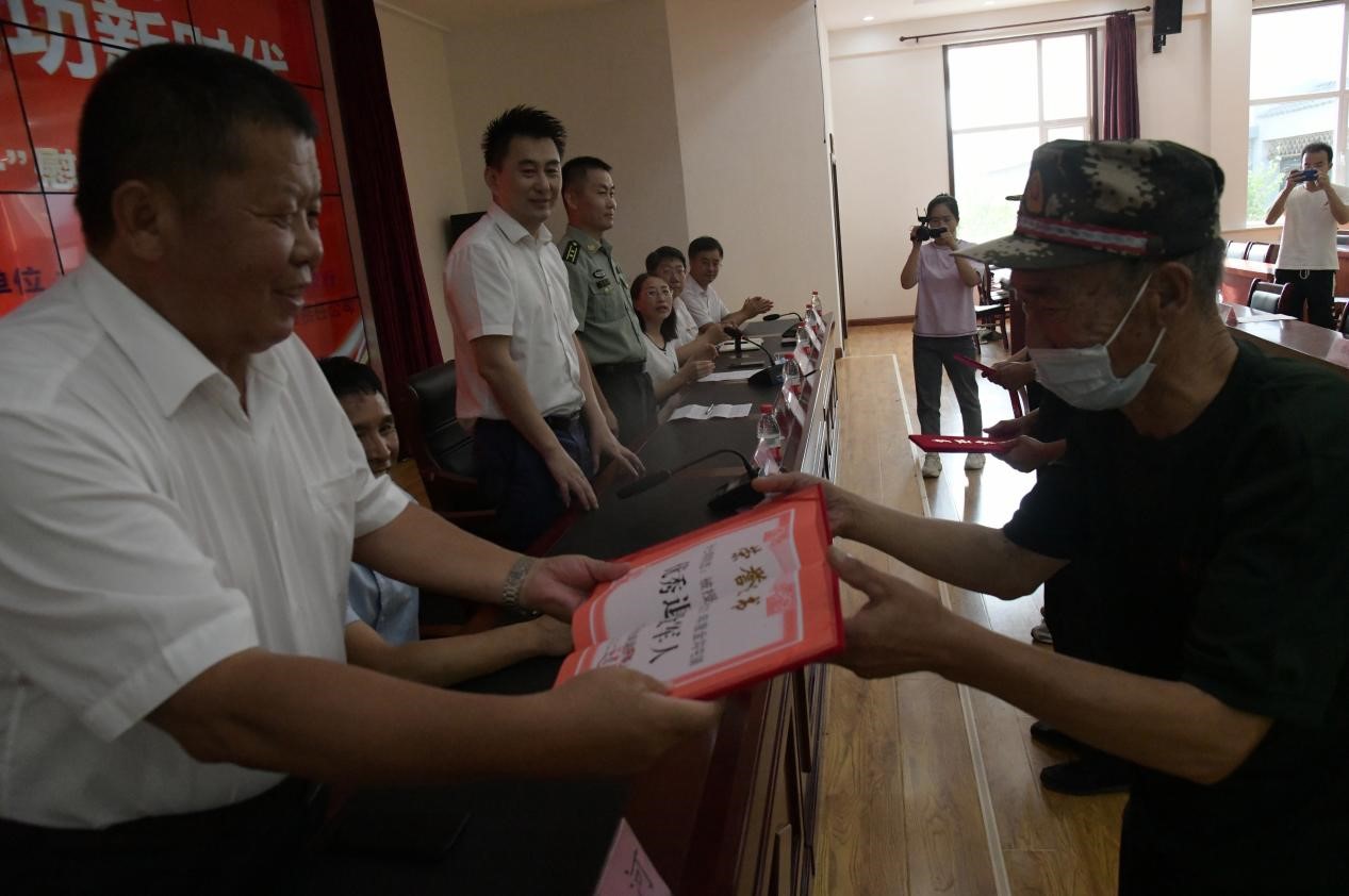 8月1日下午,灤平縣金溝屯鎮下營子村聯合愛心企業中國郵政儲蓄銀行灤平支行、灤平盛陽村鎮銀行金溝屯支行和承德久財農牧開發有限責任公司共同舉辦了“退伍不褪色 建功新時代”第二屆“八一”慰問退役軍人座談會;顒蝇F場,大家歡聚一堂,共同慶祝中國人民解放軍建軍95周年,共敘魚水深情,并為優秀退役軍人頒發榮譽證書。 王海琦 郎朗 攝